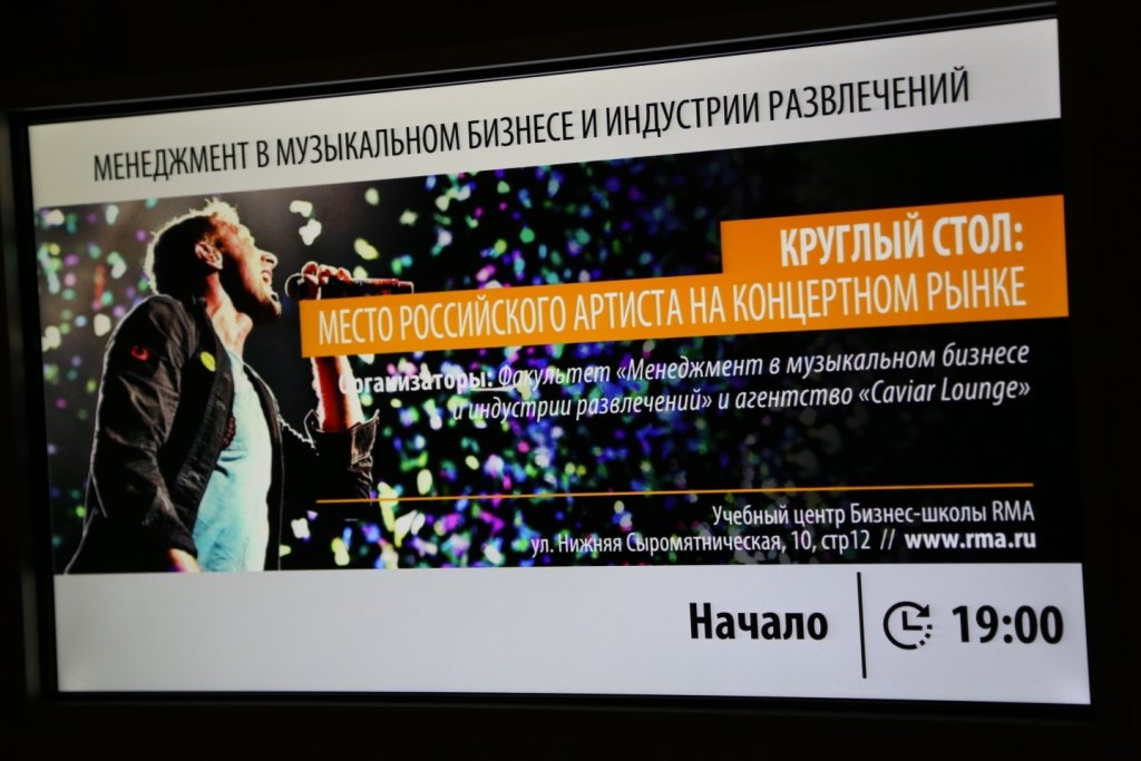 На факультете «Менеджмент в музыкальном бизнесе и индустрии развлечений» бизнес-школы RMA прошел организованный при содействии агентства Caviar Lounge круглый стол «Место российского артиста на концертном рынке». Предлагаем вашему вниманию фотооотчет с мероприятия. Фотограф Роберт Дрелингас.