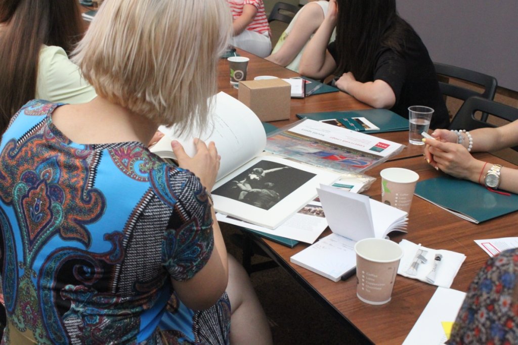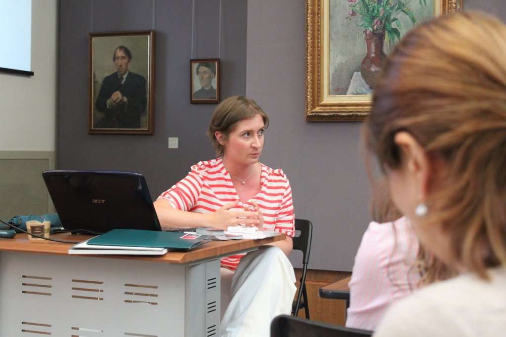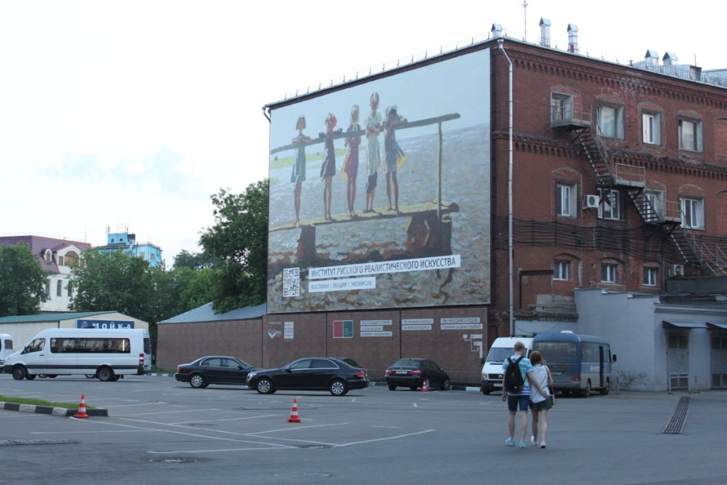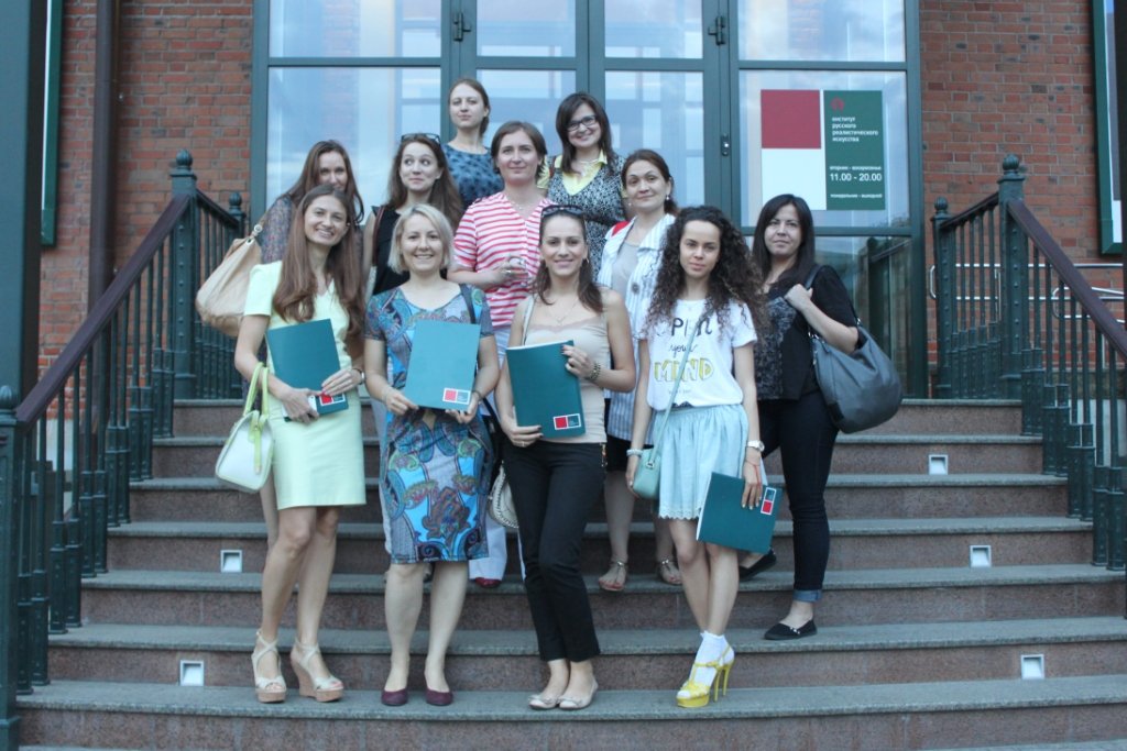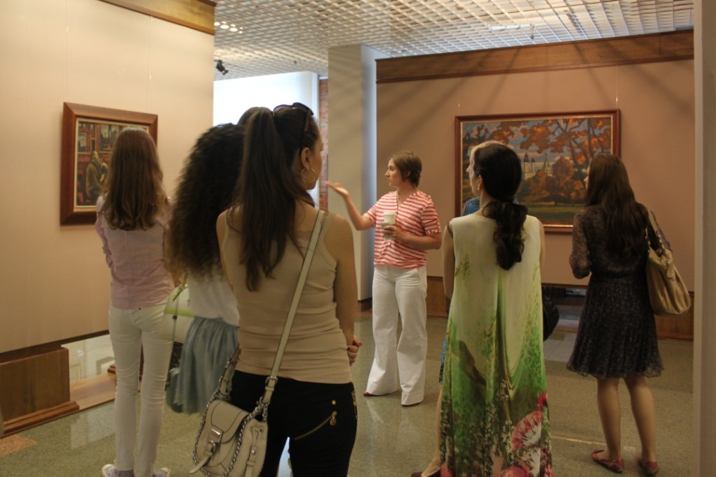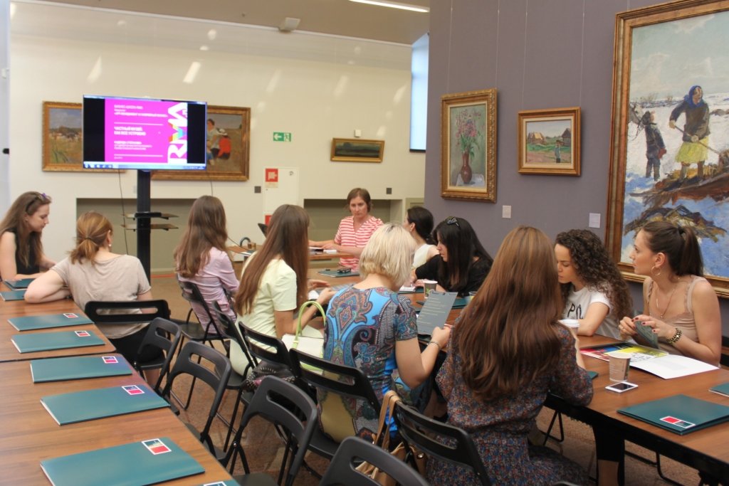В знойный понедельник 26 мая студенты факультета «Арт-менеджмент и галерейный бизнес» отправились на занятие в Институт русского реалистического искусства, который находится в одном из старинных корпусов бывшей ситценабивной фабрики, построенной в Замоскворечье в конце XIX века. В спасительной прохладе музея студентов встретила арт-директор института Надежда Степанова, которая провела экскурсию и рассказала об истории музея, о постоянной и временных экспозициях и поделилась секретами создания выставок.