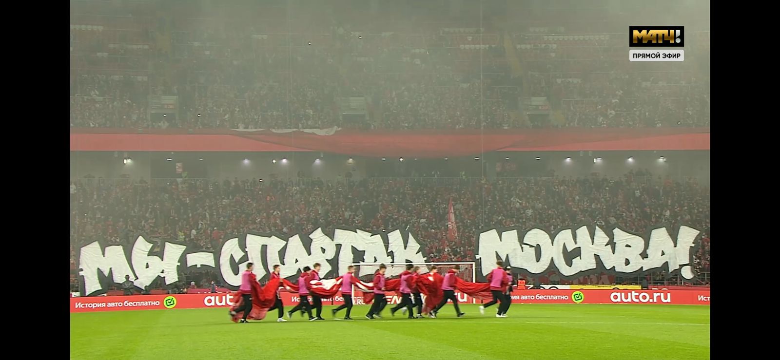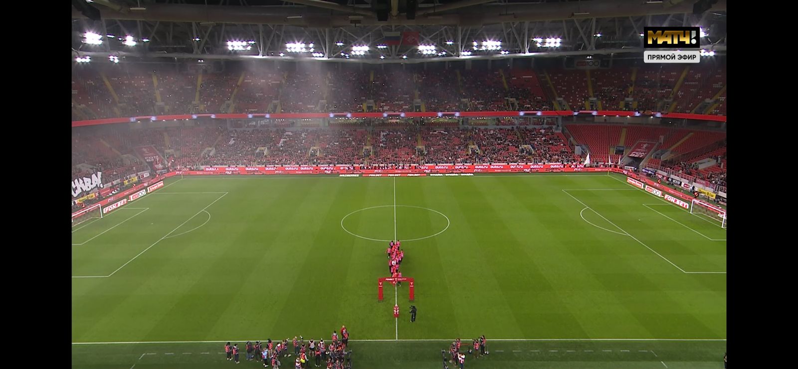 Особенно важным было двигаться строго по центральной линии поля, а на месте развернуть полотно так, чтобы логотип симметрично расположился в центральном круге. Это должно было обеспечить красивую картинку для зрителей как на стадионе, так и перед телеэкранами, и мы с этой задачей справились.