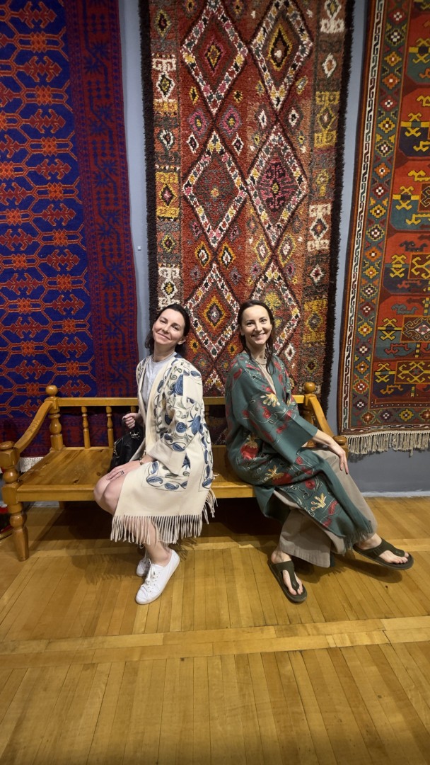 Первый день — встречи с кураторами и исследователями в Ташкенте. Группа побывала в мастерской легендарного керамиста Алишера Рахимова, в современной галерее Bonum Factum и в Государственном музее прикладного искусства Узбекистана, где студенты обсуждали с локальными художниками актуальные вопросы.