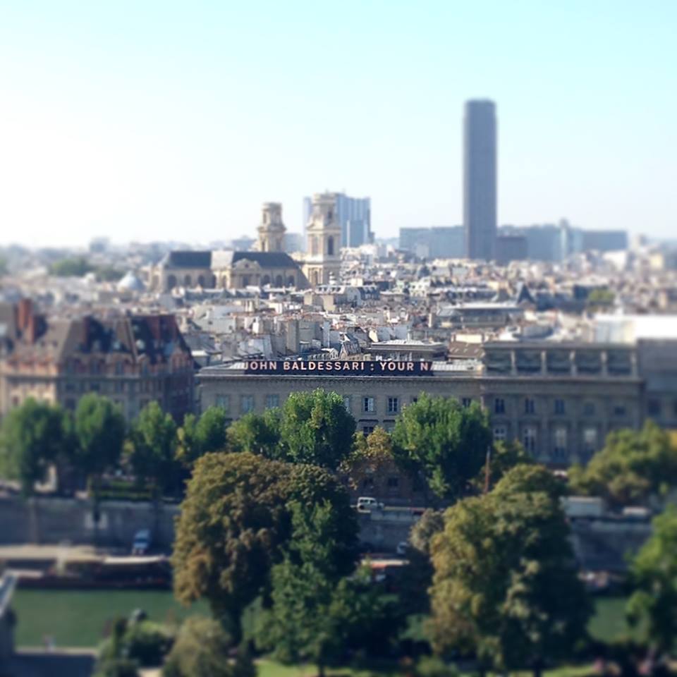 Джон Балдессари представил в Париже свой новый лайт-арт Your Name In Lights (Твое имя в огнях). Работа расположена на крыше Парижского монетного двора (Monnaie de Paris) и представляет собой 30-метровый дисплей с подсветкой, сообщает Артгид. Любой, зарегистрировавшийся на сайте Monnaie de Paris, сможет увидеть свое имя на дисплее, где оно будет высвечиваться в течении 15 секунд, озаряя небо и Сену между Мостом Искусств и Новым мостом.