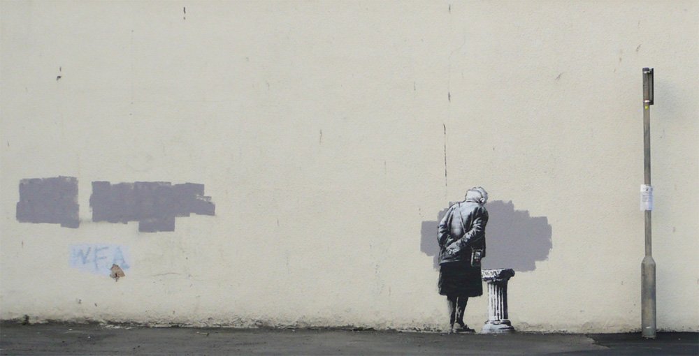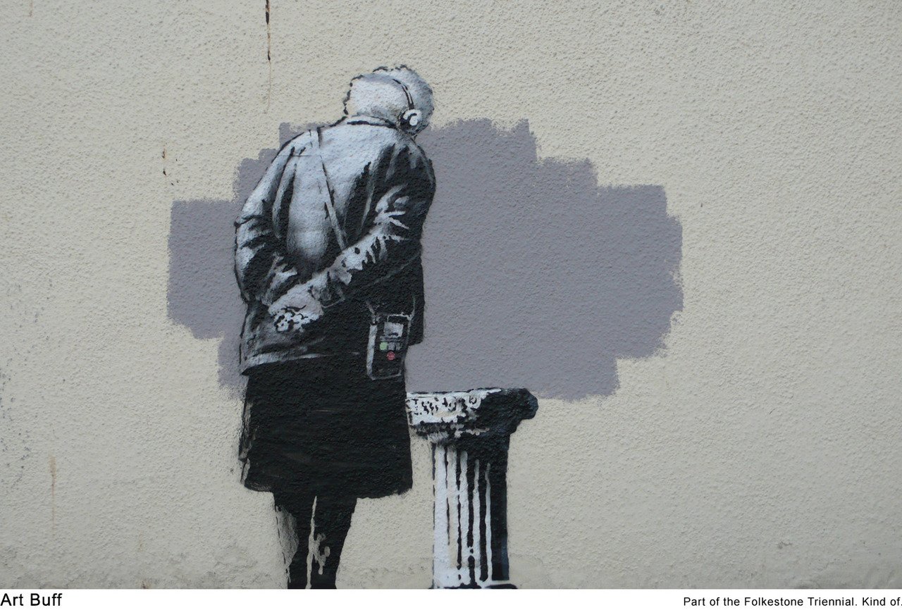 В британском портовом городе Фолкстон появилось новое граффити уличного художника Бэнкси, сообщает The Telegraph. Изображение пожилой женщины в наушниках, рассматривающей пустой постамент, украсило в минувшие выходные стену в районе Пейерс Парк. Для защиты работы тут же установили прозрачный пластиковый экран.