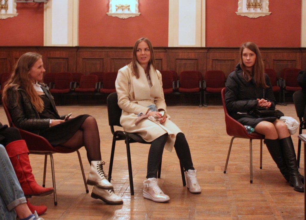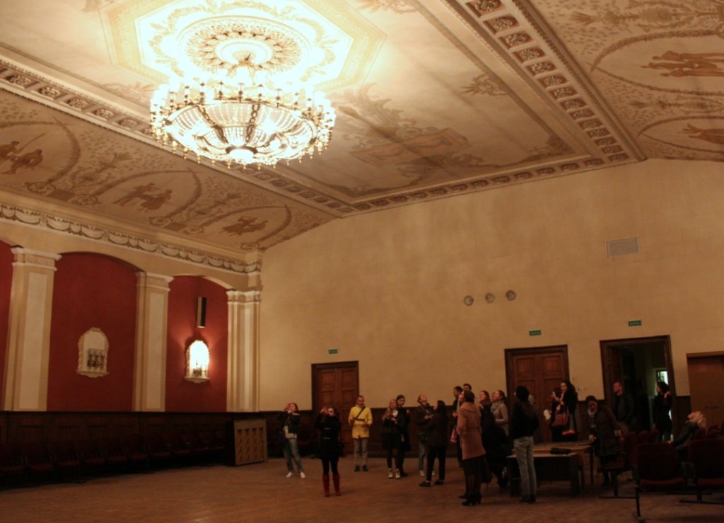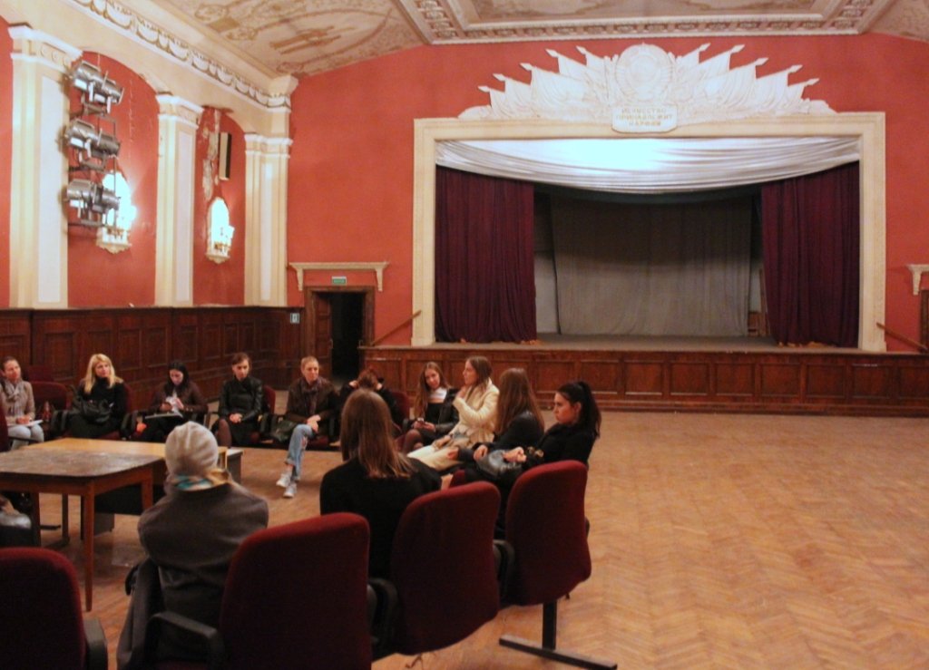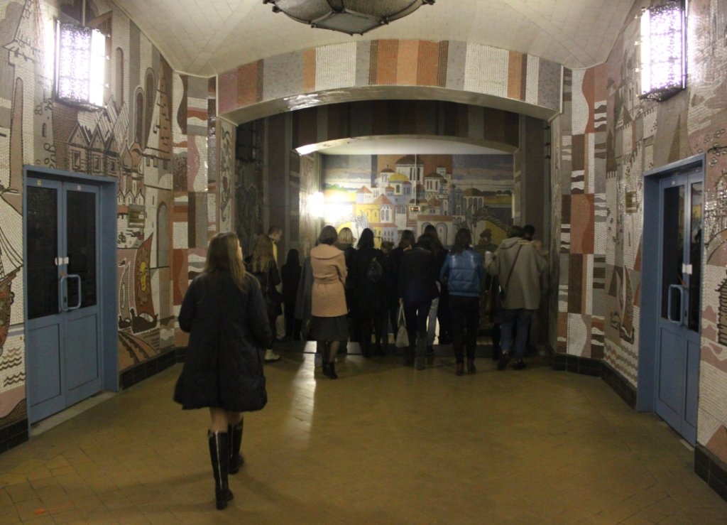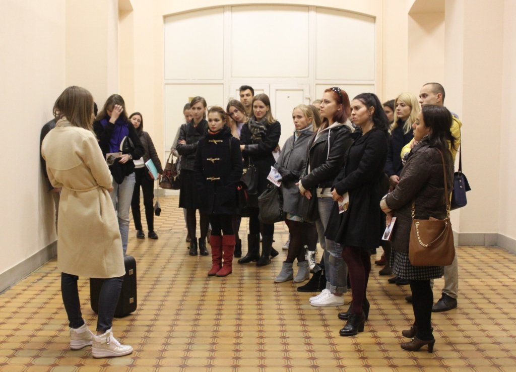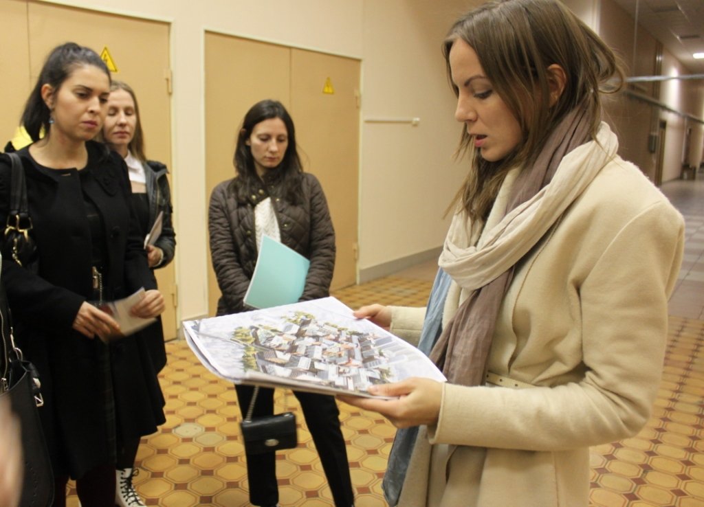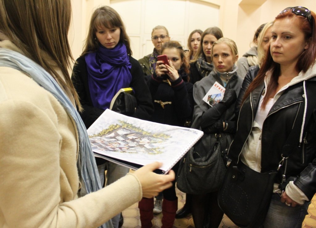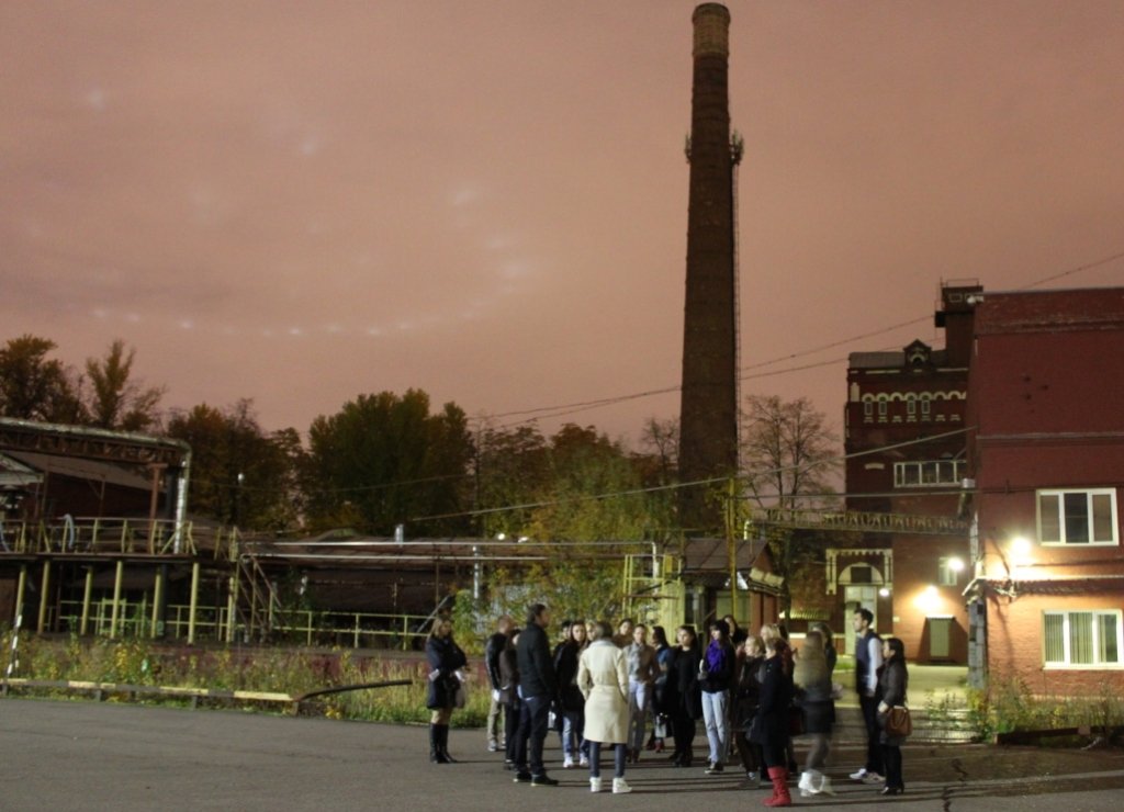 У студентов группы «А-5» факультета «Арт-менеджмент и галерейный бизнес» состоялось занятие на бывшем заводе Кристалл, который начали перевоплощать в новый городской квартал с жилыми лофтами, офисами и всей необходимой инфраструктурой, включая мастерские и выставочные залы. Руководитель отдела маркетинга проекта «Кристалл. Точка сборки» Анна Манюк провела экскурсию по территории, рассказала о плане реконструкции и о создании арт-кластеров на примере дизайн-завода «Флакон».