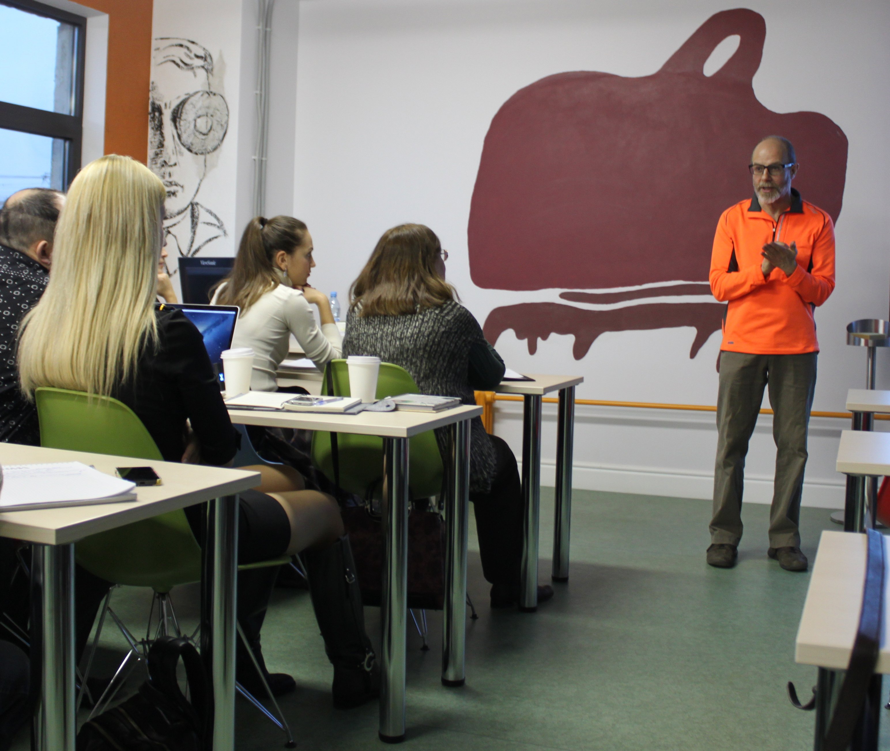 В конце ноября у группы «А-4» факультета «Арт-менеджмент и галерейный бизнес» состоялась творческая встреча с художником Дмитрием Гутовым. Его живописные полотна, скульптуры, инсталляции, видео и фотографии присутствовали на многих российских и международных выставках. Кроме прочего, он не только художник, но и теоретик искусства. В общем, Дмитрию есть чем поделиться с молодыми арт-менеджерами. Предлагаем вашему вниманию ключевые моменты лекции.