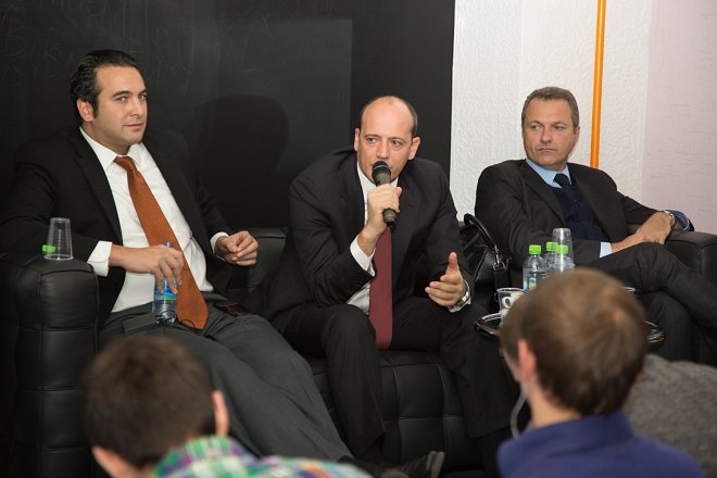 Итало Занци, Мауро Бальдиссони и Гвидо Фиенга (cлева направо) во время мастер-класса на факультете «Менеджмент в игровых видах спорта» бизнес-школы RMA