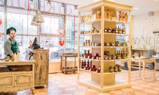 Магазин занимает около 10 квадратных метров, взятых у заведения в субаренду. В ассортименте – около 200 наименований (свежее мясо, молочная продукция, бакалея, кулинария).