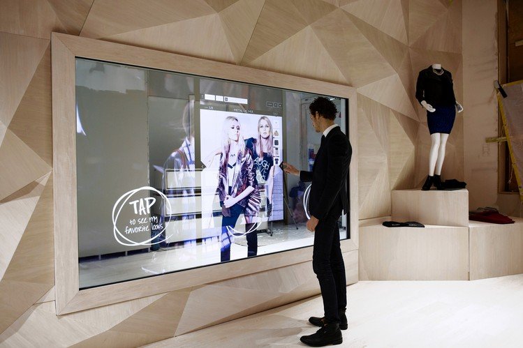 Зеркала, находящиеся в примерочных магазинов, также представляют собой сенсорные дисплеи. Они позволяют подобрать дополнительные аксессуары к выбранной одежде, узнать о наличии моделей другой расцветки или размера (ту же информацию можно получить при помощи RFID-меток, которыми снабжены все товары в магазине).