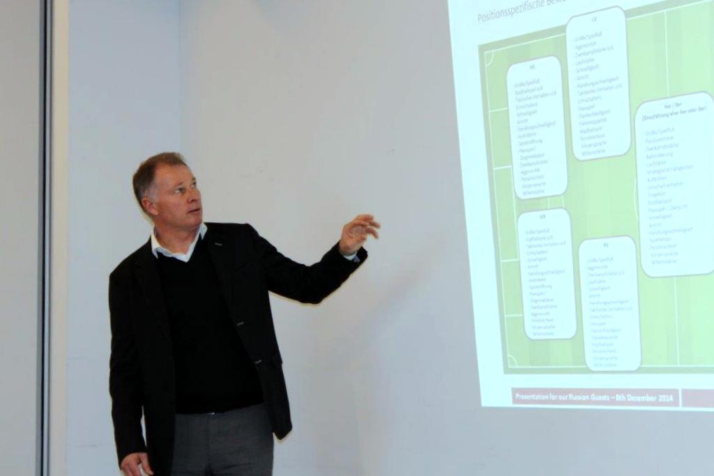 Спортивный директор «Аугсбурга» Штефан Ройтер проводит занятие для участников германо-голландской стажировки, организованной бизнес-школой RMA для студентов факультета «Менеджмент в игровых видах спорта» и его партнеров
