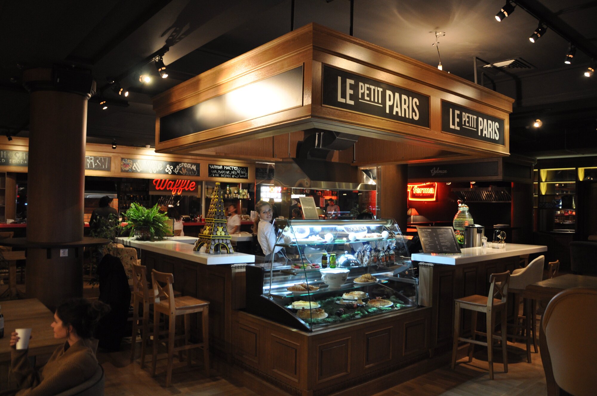 На фудкорте разместились сразу несколько точек с кухней нескольких десятков стран. Кроме еды, на маркете есть винный корнер, а также разливное пиво от Lucky Bastards.