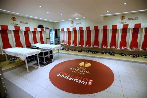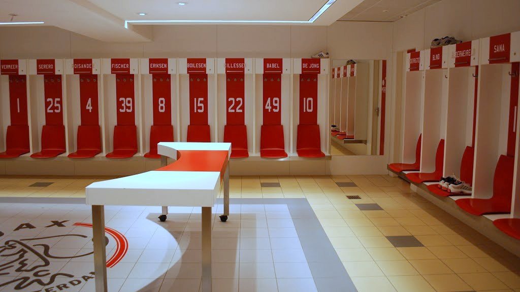 Раздевалка "Аякса" на "Амстердам Арене". Совсем недавно, в 2013 году, стадион принимал финал Лиги Европы. Пятнадцатью годами раньше, в 1998-м здесь был сыгран финал Лиги Чемпионов