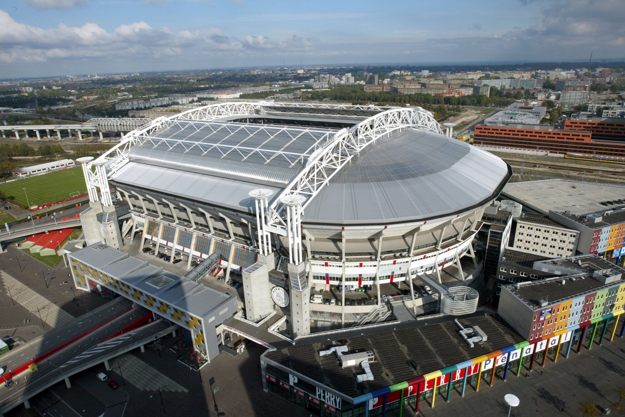 Построенная в 1996 году "Амстердам Арена" была во многом революционным проектом, при реализации которого использовались новейшие технические решения. Она, в частности, стала первым в Европе стадионом, оснащенном раздвижной крышей, а рост травы на ее футбольном поле уже тогда стимулировался с помощью мощных ультрафиолетовых ламп -- технология, подсмотренная сотрудниками арены в цветоводческих хозяйствах, которыми так славится Голландия, и теперь используемая практически на всех крупных стадионах мира