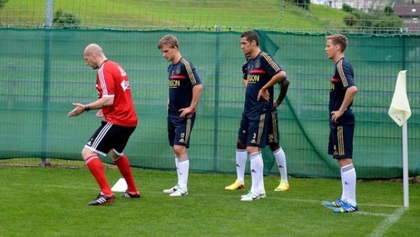 Академия "Аякса". Занятие для защитников проводит Яп Стам, чемпион и двукратный обладатель Кубка Голландии, трехкратный чемпион и обладатель Кубка Англии, обладатель Кубка Италии, победитель Лиги Чемпионов