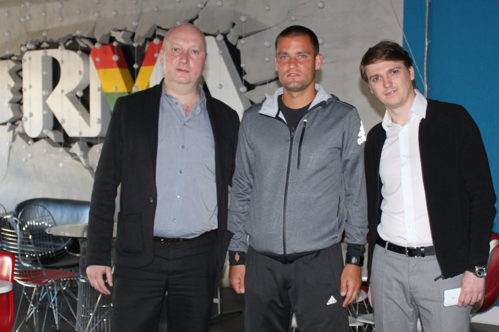 Михаил Южный с директором бизнес-школы RMA Кириллом Кулаковым и руководителем факультета "Менеджмент в игровых видах спорта" Никитой Матвеевым