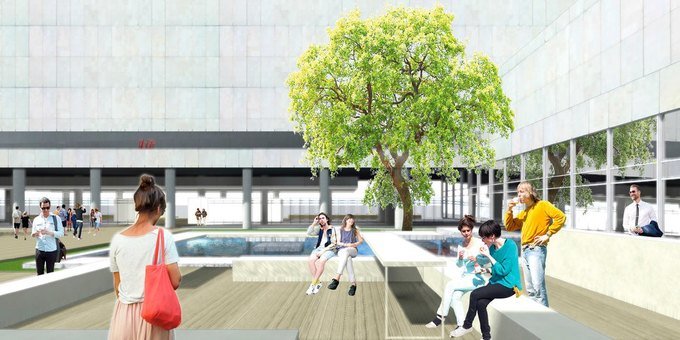 Студия ZolotoGroup обнародовала дизайн-концепцию оформления холла и внутреннего дворика Третьяковской галереи на Крымском Валу, сообщает The Village.