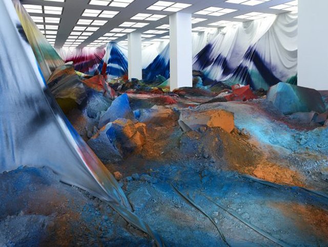 Экспозиция в «Гараже» — первая выставка в России для берлинской художницы Катарины Гроссе, известной цветными и довольно радикальными трансформациями окружающего пространства, иногда не только музейного. Гроссе не ограничивается стенами, как правило, заполняя своими инсталляциями все здание целиком.