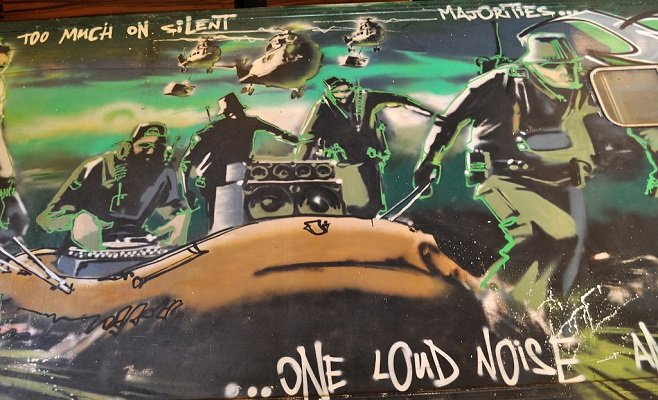 На грузовике написаны фразы «Молчание — хрупкая вещь», «Не стоит слишком надеяться на молчание», «Один громкий звук, и начнется». Это одно из первых граффити Бэнкси, о котором ранее не было известно, и самое крупное.