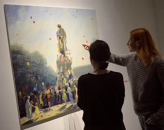 На открытии картины оживают: Варя Павлова в головном уборе, напоминающем Спасскую башню, поет "Дорогие мои москвичи" рядом с картиной, где она же и изображена. Посетители тоже ведут себя вполне по-сорокински: громко обсуждают, кто к кому поедет на дачу и когда все уже получат свои деньги. Все заняты, и никто не обращает внимания на даму, художественно позирующую у каждой картины: в какой-то момент она берется руками за воздушный шар на картине "День рождения Пушкина" и его слегка размазывает, возмущенно замечая, что краска почему-то была еще свежая. Настоящее здесь напоминает те веселые сны, от которых, как художник рассказывал в недавнем интервью, он в детстве просыпался ночами, громко смеясь. Только проснуться уже больше не получается.