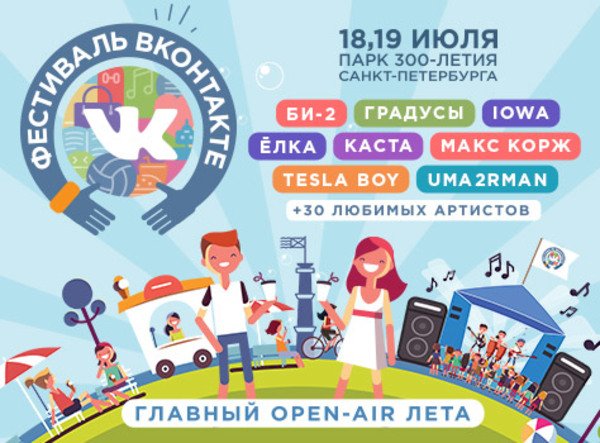 Первый фестиваль «ВКонтакте» закрылся в Санкт-Петербурге 19 июля. Он проходил два дня на берегу Финского залива. В событии участвовало более 50 тысяч человек из России и стран СНГ.