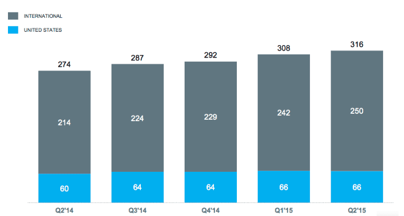 По итогам второго квартала 2015 года количество активных пользователей Twitter в мире достигло отметки в 316 миллионов человек. Ещё в первом квартале этот показатель составлял 308 миллионов, напоминает "Цукерберг позвонит".