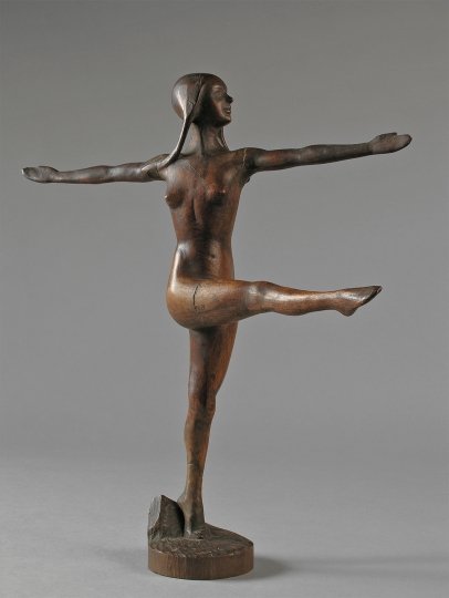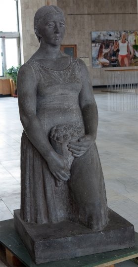 И все же советские скульпторы не отказываются от классических канонов красоты, от обнаженной женской натуры и даже традиционной аллегории. Об этом свидетельствуют работы отечественных классиков Владимира Домогацкого, Георгия Лаврова, Иосифа Чайкова и не столь широко известного, но замечательного мастера Оскара Мещанинова, представленного недавно отреставрированной «Девушкой с цветами» (1927). В 1928 году она участвовала в московской выставке «Современное французское искусство» (скульптор работал над ней в Париже) и теперь выставлена спустя почти 90 лет.