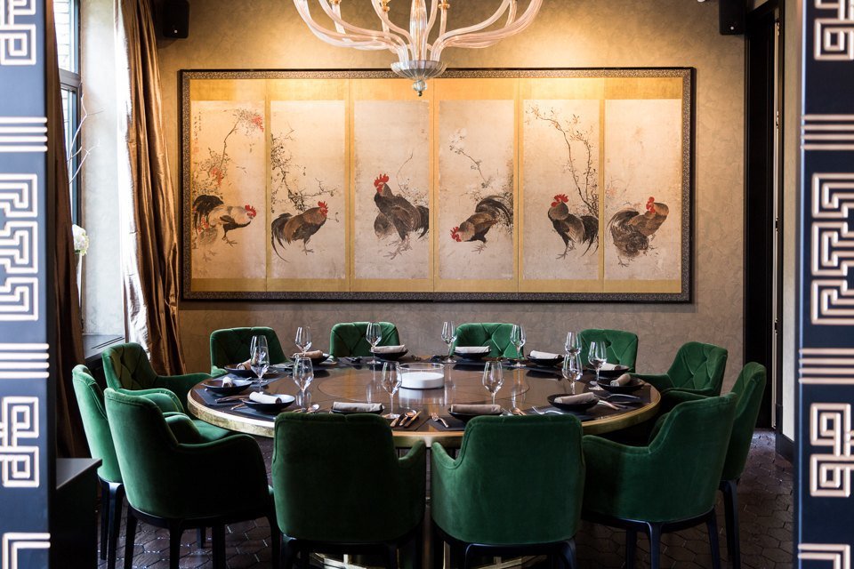 Главной особенностью интерьера стала сюрреалистичная фреска, на которой переплелись религии и мифология. Основной зал заполнен мебелью темного дерева, креслами и диванами, обтянутыми бархатом зеленого и грязно-голубого цветов. Есть небольшой приватный зал с деревянными дверьми черного цвета, покрытыми золотой этнической резьбой.