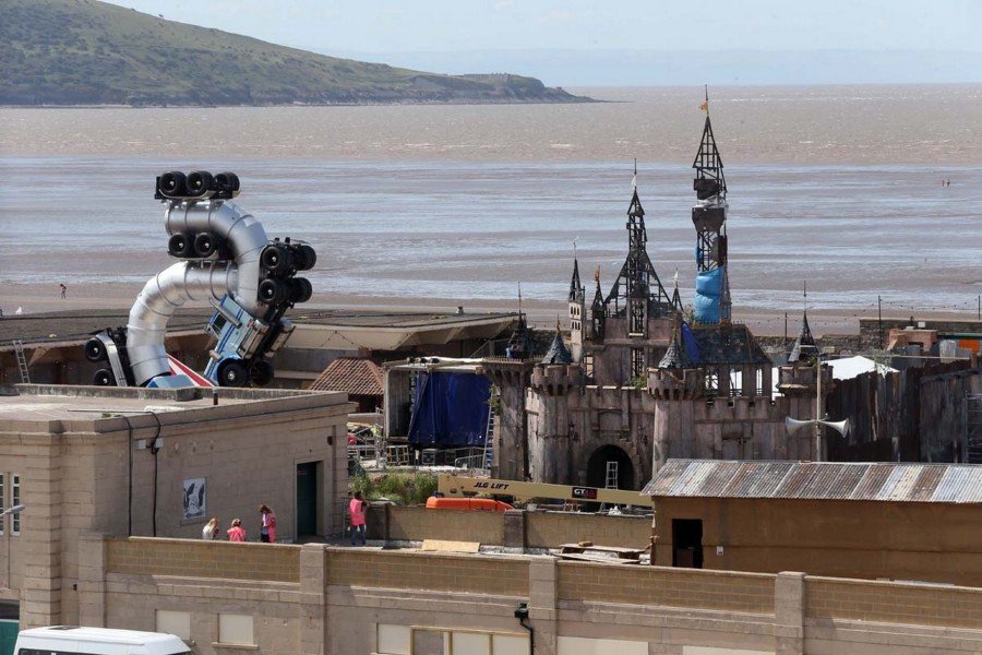 Знаменитый уличный художник Бэнкси в английском курортном городе Уэстон-сьюпер-Мэр соорудил свой собственный парк с мрачной атмосферой Dismaland (dismal в переводе с английского — угрюмый, гнетущий) в противовес известному парку развлечений «Диснейленд». Об этом в четверг, 20 августа, пишет Mashable.
