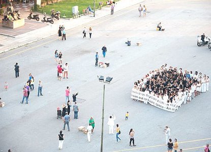 К 100-летию создания «Черного квадрата» Казимира Малевича в Салониках состоялся перформанс «В общественное пространство», инициированный немецким художником Мишей Кубаллом: 188 человек в темной одежде, построенные в форме квадрата, опутанного транспарантом с лозунгом «Искусство выходит в публичное пространство», прошли по городу.