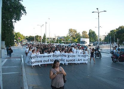 Акция «В общественное пространство» вписывается в программу IV Фестиваля перформанса в Салониках, которая осуществляется в рамках основного проекта V Биеннале cовременного искусства в Салониках и поддерживается IFA (Германия) и Институтом Гете в городе Салоники, сообщает The Art Newspaper.