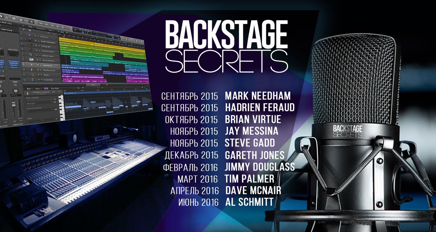 С сентября 2015 по июнь 2016 года студенты Backstage Secrets смогут пройти все аспекты студийной работы – подготовку к записи, запись основных инструментов – барабанов и перкуссии, гитар, баса, вокала и бэк-вокала, познать тонкости обработки и редакции материала, и, конечно, сведение и мастеринг.