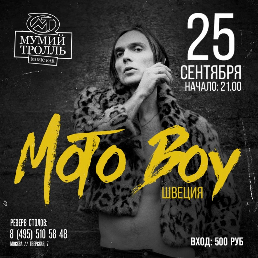 Шведский музыкант и певец Moto Boy выступит с концертом в Москве. Концерт состоится 25 сентября в Мумий Тролль Music Bar. Начало в 21.00.