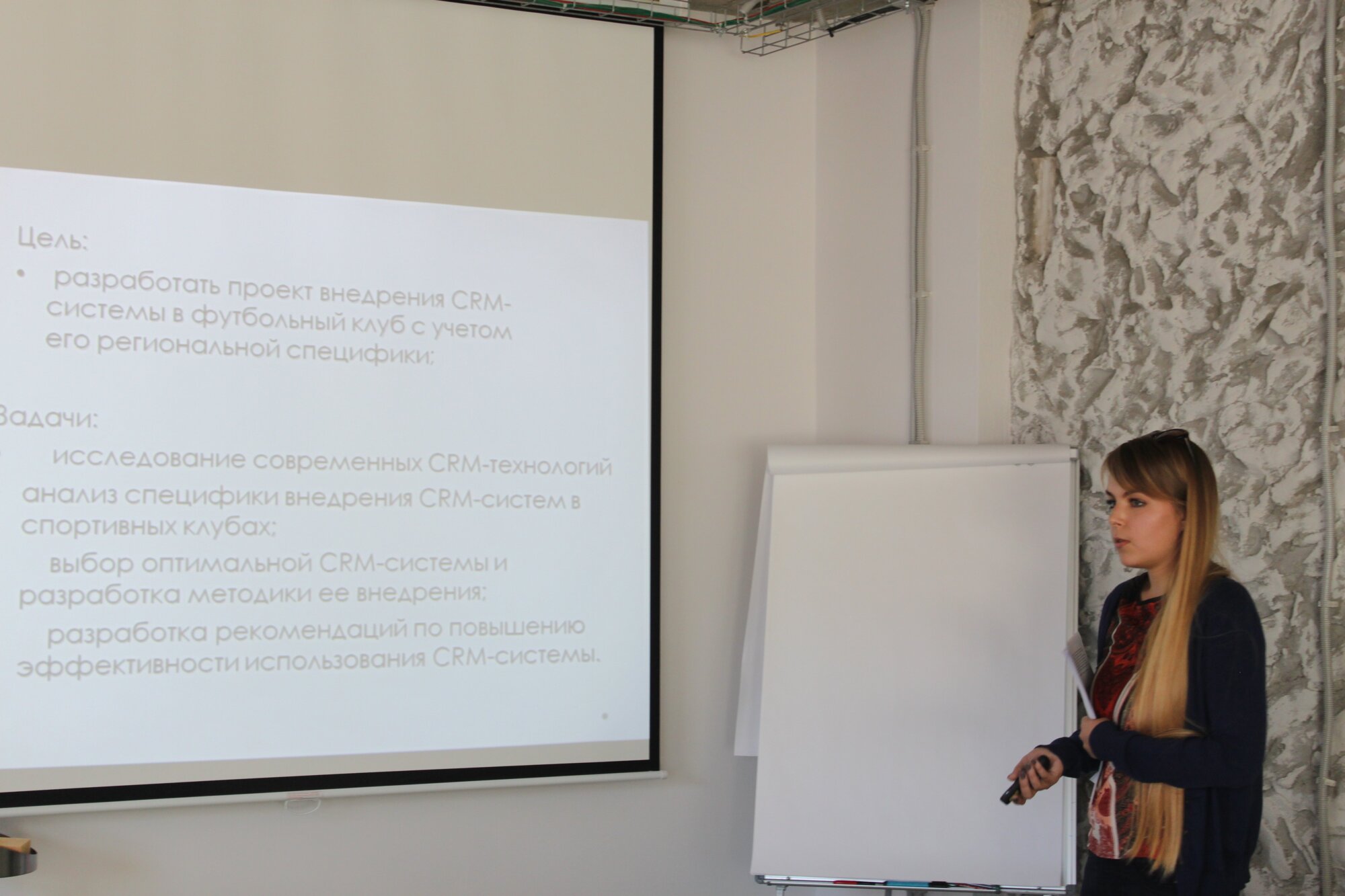 «С-35»: Софья Васильева, «План мероприятий по увеличению посещаемости и продаж регионального спортивного клуба с помощью внедрения CRM-системы на примере ПФК "Арсенал"»; Мария Редкина, «Разработка плана мероприятий по интеграции экстремальных видов спорта в Российской Федерации»; Татьяна Третьякова, «Разработка программы мероприятий по соответствию российских футбольных правилам финансового «Фэйр-плей» УЕФА»; Дмитрий Уфимцев, «Разработка концепции проведения отборочного раунда чемпионата Европы по футболу среди юношей до 19 лет в городе Аша»; Михаил Швецов, «Разработка программы развития академии ПФК «Сокол», г. Саратов»; Максим Яковенко, «Разработка стратегического плана развития стритбольного клуба "Хардкорт"»; Евгений Янин, «Создание и функционирование Любительской Коломенской Хоккейной Лиги».