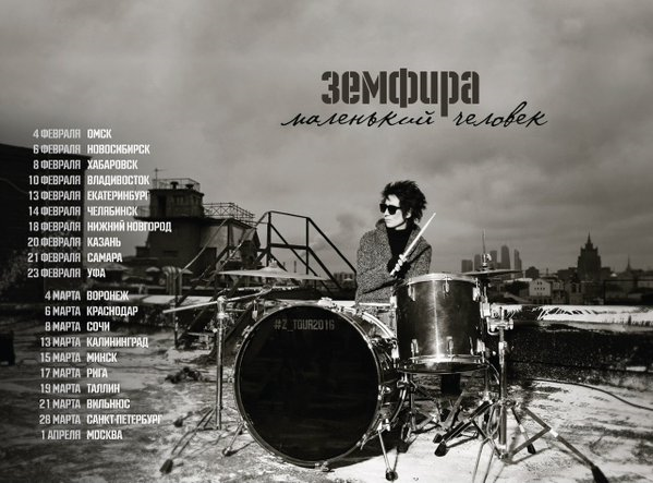 Всего в гастрольном графике Земфиры двадцать городов. Список окончательный и дополнен не будет. Стартует тур в феврале будущего года. Закончится турне исполнительницы 1 апреля большим концертом в Москве. В Санкт-Петербурге выступление состоится 28 марта.