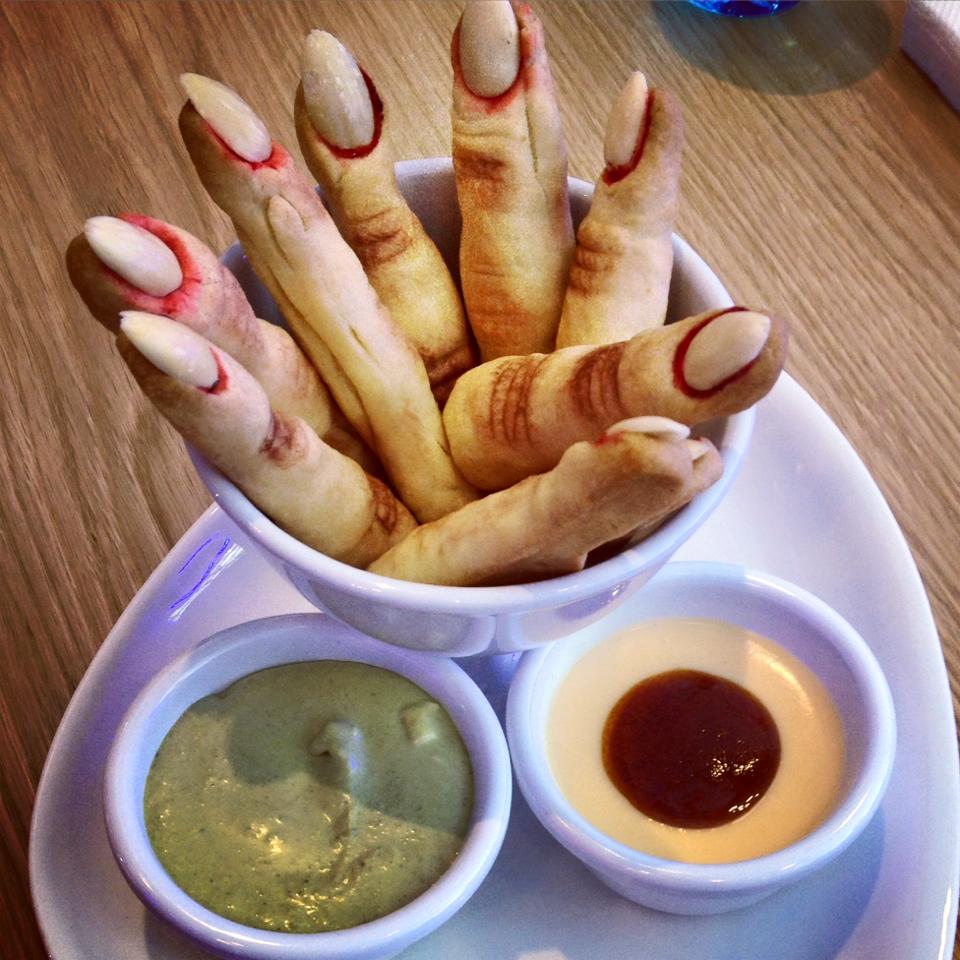 В меню — «Мумия из подкопчённого лосося» (325 рублей), печенье в виде пальцев с соусом на выбор (596 рублей), салат из овощей с жареной индейкой под названием «Индейка в тумане» (345 рублей). Из супов есть «Котелок с борщом» (235 рублей), «Суп из царя Гороха» (235 рублей), а также суп из рыбы и морских гадов (355 рублей).