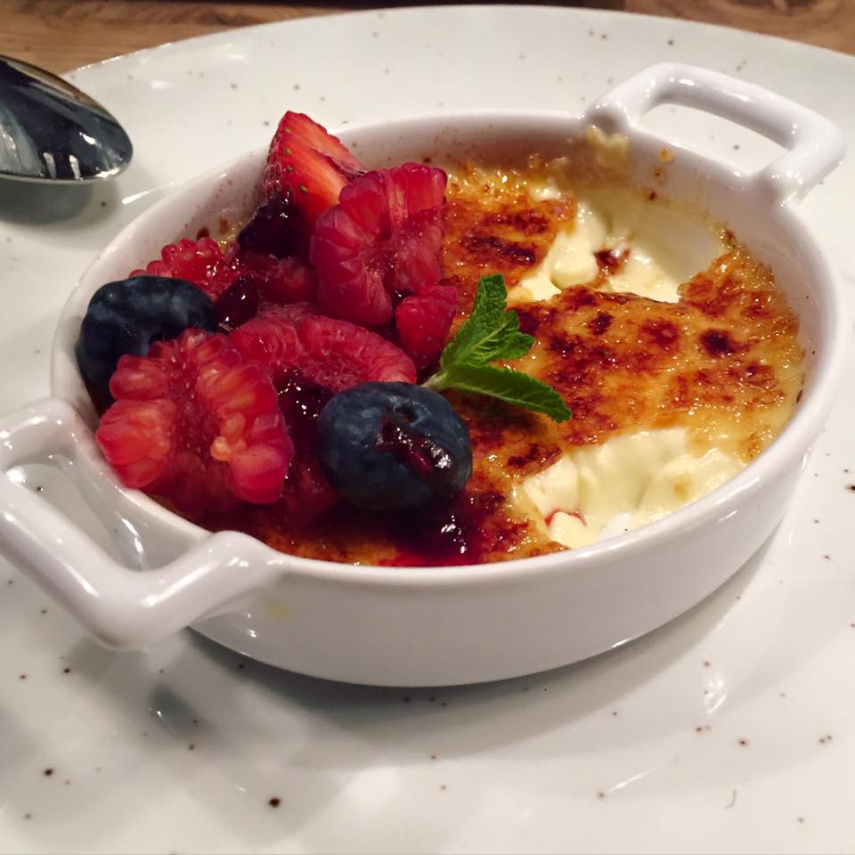 На десерт можно заказать творожное кольцо (90 рублей), «Медовик» (200 рублей), ореховый пирог (350 рублей), сдобную гренку с вареньем по-московски (250 рублей) и ананас с ванильным мороженым (400 рублей).
