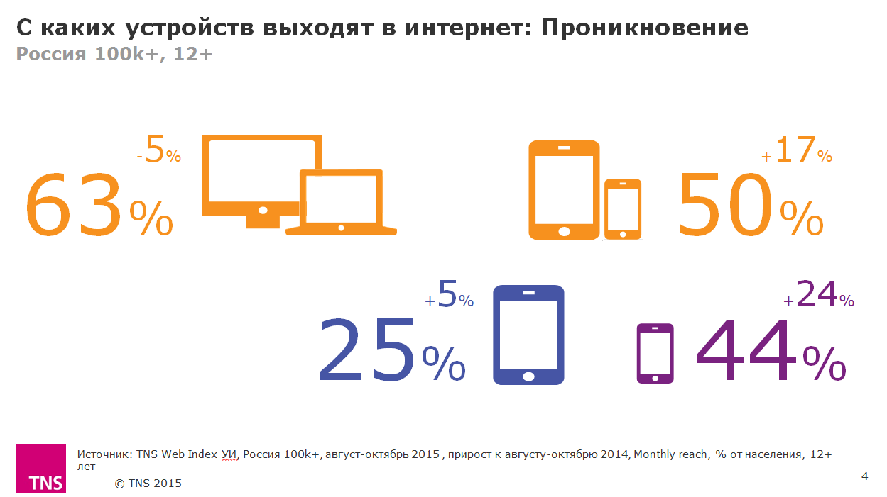 Инесса, добрый день. Поделитесь, пожалуйста, последними данными, сколько пользователей в целом выходят в интернет с помощью мобильных устройств?