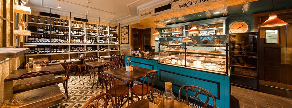 В интерьере дизайнеры отдали предпочтение дереву и большим винным стеллажам для удобства гостей при выборе.