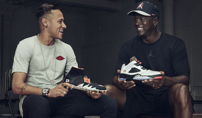 Под брендом Jordan будет представлена новая версия кроссовок Jordan V Low с автографом Неймара на внутренней поверхности язычка. Бутсы NJR x JORDAN Hypervenom будут представлены в новом дизайне, созданном на основе вдохновляющего наследия баскетбольных кроссовок Jordan V – любимой модели Неймара.