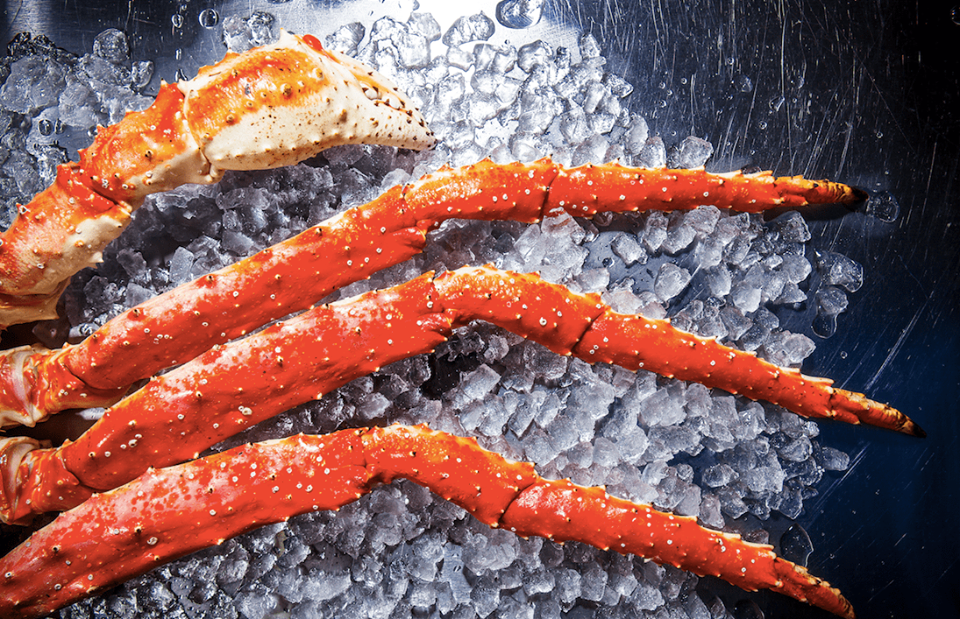 Идея: Как и предполагает название заведения, основу меню составляют блюда из краба и вино. Винная карта, по словам представителей ресторана, так велика, что её «пришлось размещать в айпадах», а не на бумаге. Здесь можно найти вино из конкретных сортов винограда (в карте их более 100) и нужного региона. Что касается еды, то в основе меню — крабы: камчатский, опилио, синий, колючий, «лягушка» и «волосатик». Цены за 100 грамм — от 250 до 600 рублей. Для поклонников мяса в меню есть раздел с рибаем, утиной ножкой и другими блюдами из мяса.