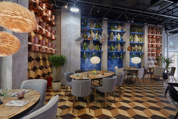 Интерьер: Cook'kareku, расположенный в торговом центре, работает круглосуточно. Чтобы гости могли приходить сюда, когда «Мега» закрыта, в ресторан сделали специальный вход. Заведение рассчитано на 130 посадочных мест. Здесь в отличие от первого ресторана сети кухню сделали открытой. Главная деталь в интерьере — огромные часы-проектор, которые будут показывать завтраки разных стран мира.