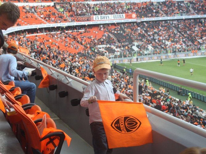Стадион тем временем потихоньку заполняется. И очень скоро становится ясно, что именно здесь, на «Донбасс-Арене», удалось реализовать ту самую концепцию «семейного отдыха на футболе», о которой мы тут у себя так долго переливаем из пустого в порожнее. Сюда и впрямь идут семьями. Сюда ведут детей. Потому, что здесь интересно. Весело. Комфортно. И не страшно.
