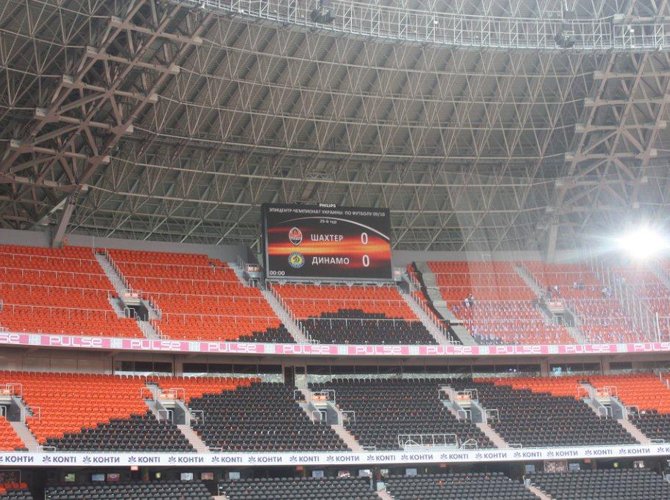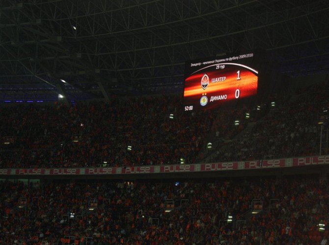 Помню, еще пару лет назад, среди довольно немногочисленных поводов для нашей вечно уязвленной футбольной гордости был и такой: «Локомотив» — лучший стадион Восточной Европы«. Но вот эта пара лет минула, и гордиться нам стало особенно нечем. Потому, что Украина за это время никуда из Восточной Европы не подевалась, а стадионов, побивающих московский железнодорожный по многим статьям, здесь образовалось как минимум три. «Днепр Арена» в Днепропетровске — раз. Харьковский «Металлист» — два. И, наконец, донецкая «Донбасс-Арена». Вот она-то сейчас и лучшая. В Восточной Европе по крайней мере, хотя, точно вам говорю, в Западной она тоже не потерялась бы. Все, как всегда, подтверждается цифрами, так что те, кто их любят, пусть сразу идут сюда. А я пока просто предлагаю вам увидеть новый стадион донецкого «Шахтера» таким, каким увидели его мы 5 мая 2010 года, в день, ставший для клуба историческим.