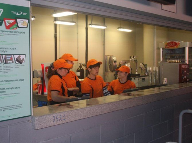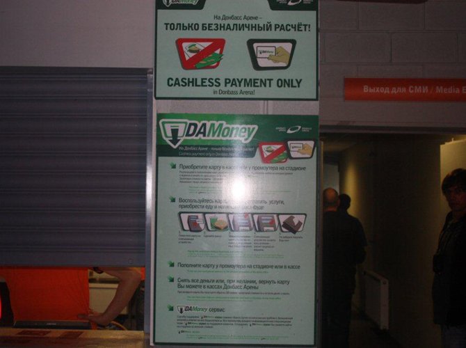 Заступили в караул у кофемашин и пивных кранов труженики всех 53 буфетов в стиле фаст-фуд. Между прочим, расплатиться в них можно исключительно безналично. Хочешь выпить, к примеру, кружечку-другую «Сармата», будь любезен, отдай свои трудовые 16 гривен специально стоящей в уголку девушке, а взамен получи пластиковую карту и — шествуй с ней аж до самого платежного терминала. Говорят, так обслуживание происходит быстрее, не создается очередей и пропускная способность, а, соответственно, и выручка буфета на радость администрации увеличиваются в весьма значительной степени. Ну, не знаю. Не уверен.