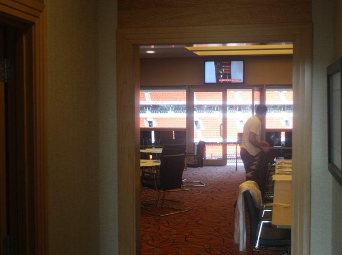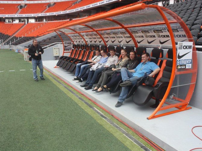 Эту полезную информацию, которой делится с нами один из сотрудников арены, мы выслушиваем, со всем возможным удобством расположившись на хозяйской скамейке. Впрочем, вы и сами наверняка видите, что грубое слово «скамейка» в данном случае — не более чем условность и последняя дань отживающим традициям.