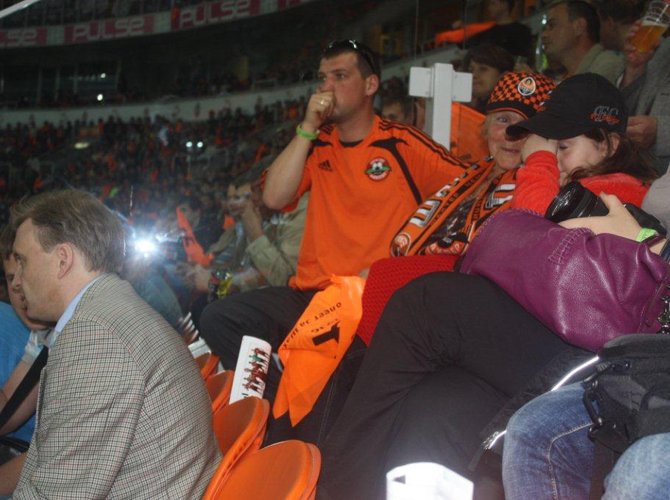 На матче случился рекорд, да не один, а сразу два: во-первых, его посетили 52 518 человек, больше, чем арена способна вместить официально. Оказалось, предвидя ажиотаж, администрация пустила в продажу некоторое количество билетов без мест, с тем, чтобы граждане, их приобретшие, могли наблюдать за игрой, стоя в галереях подтрибунных помещений, а то и вовсе по телевизору — из расположенных на арене кафе и ресторанов. Второе достижение выглядело еще более впечатляющим: утром следующего дня едва отошедший от празднований гендиректор «Шахтера» Александр Атаманенко торжественно объявил нам, что, по его подсчетам, накануне гости «Донбасс-Арены» общими усилиями опорожнили 43 тысячи кружек пива, почти по пол-литра на брата. Показатель выдающийся не только для Донецка, но и для самой Германии: там игра считается удачной, если бокалом пива соблазнился каждый второй пришедший на нее болельщик.