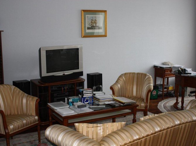 Номер Мирчи Луческу. Обратите внимание на залежи видеокассет с записями футбола. Сергей Палкин, гендиректор «Шахтера», говорит, что в целях экономии жизненного пространства буквально умолял Мистера перейти на более современный формат, хоть бы и на DVD, но тот его так и не послушался.