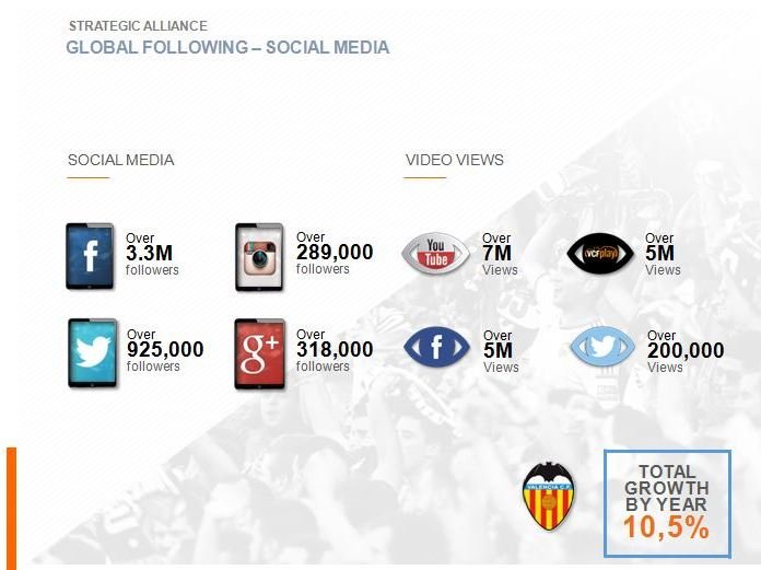 Мы — клуб, матчи которого в сезоне 2015/16 по телевизору посмотрели 15 миллионов человек в Испании, и еще 123 миллиона — в остальном мире. У нас под 5 миллионов человек фолловеров в основных соцсетях, наши ролики, сюжеты, так или иначе связанные с «Валенсией», на главных видеоплатформах на данный момент собрали в общей сложности больше 17 миллионов просмотров.