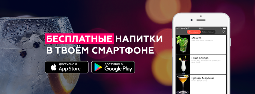 iDrink — это агрегатор комплиментов: рестораны и бары в условиях высококонкурентного рынка готовы предлагать бесплатные напитки посетителям для привлечения новых и повышения лояльности постоянных. Запуск запланирован сначала в Москве, а затем и в других городах России. Принцип: пользователь платит ежемесячную подписку 390 руб. и имеет возможность каждый день получать напиток в подарок при любой сумме заказа. Кроме того, неоднократно в одном или нескольких местах можно пользоваться акцией 2=1 («два напитка по цене одного»), которую предлагают многие кафе и рестораны эксклюзивно только для приложения iDrink. Среди напитков: кофе, чай, соки, лимонады, вино, пиво, коктейли, крепкий алкоголь.