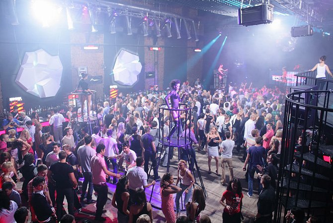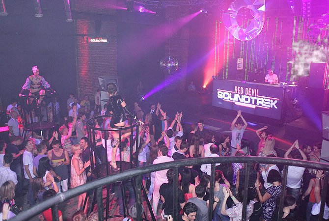 Discoteque, расположившийся на территории бывшего завода "Арма", оформлен по актуальным европейским стандартам - барные стойки вдоль стен, LCD-экран на 50 квадратных метров за спиной ди-джея, еще один под потолком и стойки для девушек go-go. Дополняют картину соседствующие со столами и диванами площадки на втором этаже, с которых клуб виден как на ладони, и выполненная в нежных тонах lounge-зона. Отличный звук и впечатляющие световые эффекты попросту не оставляют шансов гостям, которые после полуночи начинают вытанцовывать под ритмы качественной европейской музыки до тех пор, пока хватает сил.