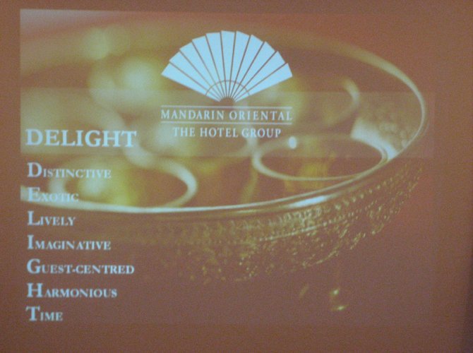 Как рассказал участникам стажировки Кит Эдвардс, программа по изучению организации питания (food & beverage) в Mandarin Oriental рассчитана на год. Несколько месяцев из этого срока отводятся практике, которую студенты проходят в барах, ресторанах и других подразделениях гостиничной сети. Свои квалификационные работы будущие менеджеры защищают в присутствии высшего руководства Mandarin Oriental.