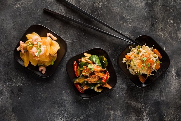 В меню представлены 20 разновидностей классических и фирменных роллов, суши, сашими, гунканы. Также есть традиционные паназиатские и японские блюда: лапша удон по-тайски с морепродуктами и по-японски с креветками и курицей, рисовая лапша по-сингапурски с говядиной, суп из акульих плавников, набэ с говядиной и шиитаке.